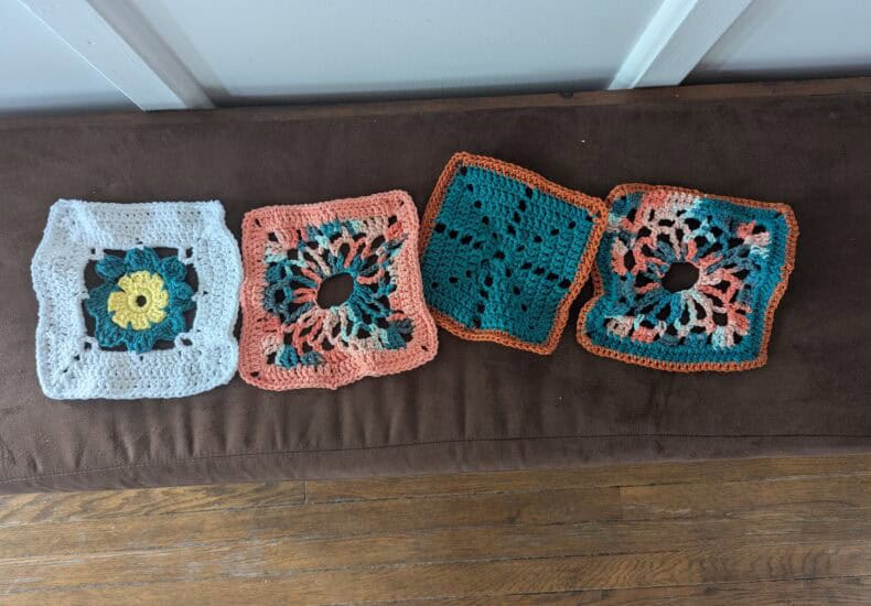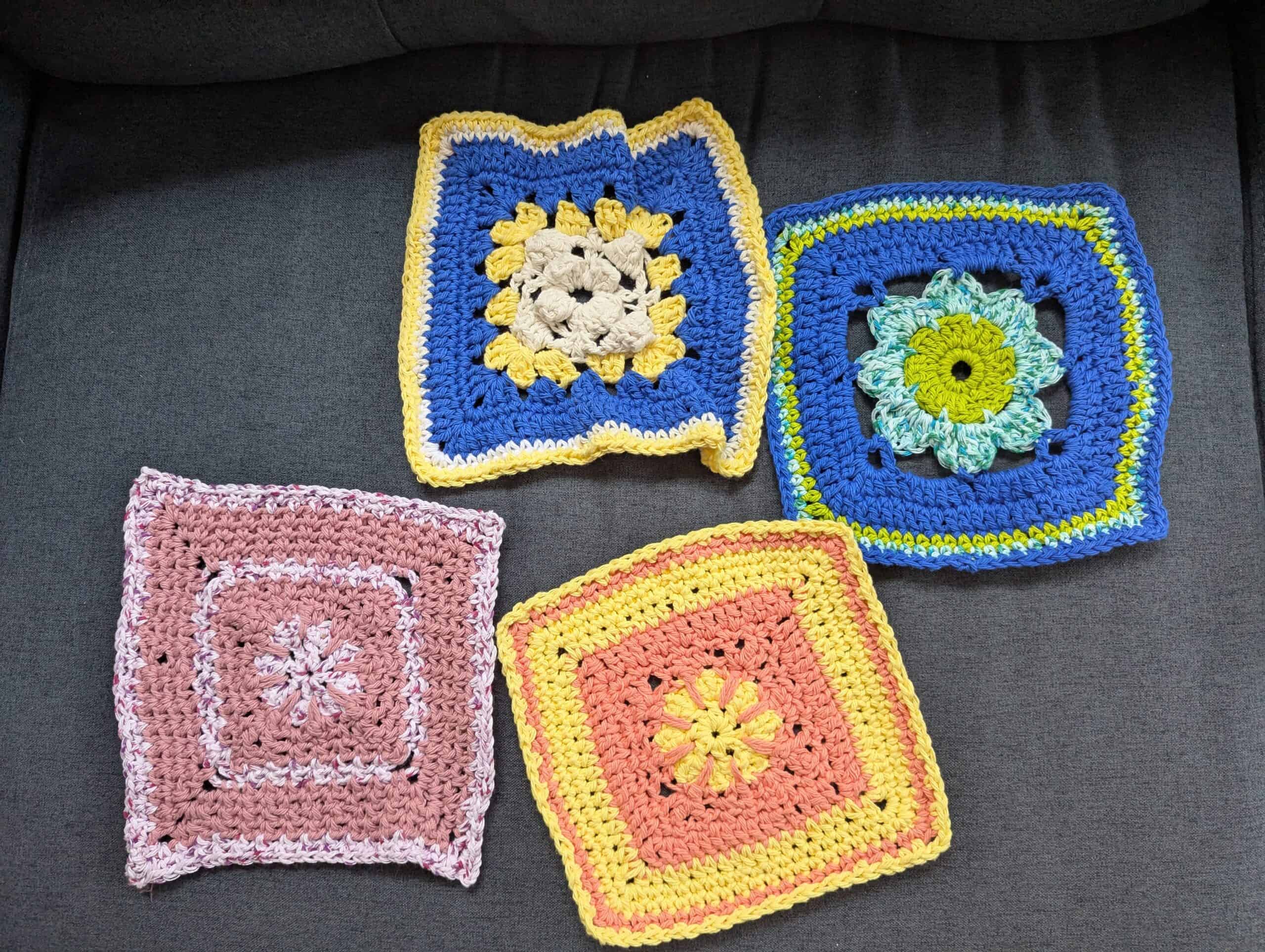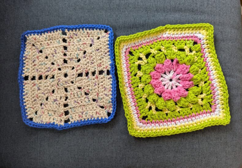 No matter how hot it is, you can always knit or crochet something…as long as it is small. Knitting or crocheting a blanket in the heat is terrible. The blanket is draped across your legs and it is HOT! So, stick to dishcloths, socks and granny squares in the summer.