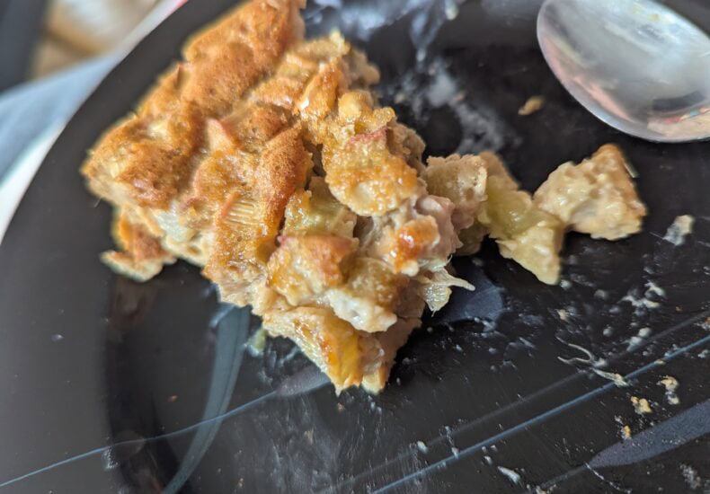 All the deliciousness of a creamy rhubarb custard pie without any crust-fussing. This simple blender recipe forms its own crust – a layer of cream over the crust and rhubarb on top. You can use fresh or frozen rhubarb (thawed and drained) and you just need to add a little whip cream or ice cream