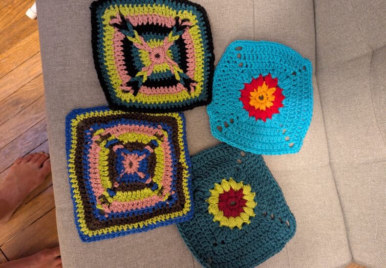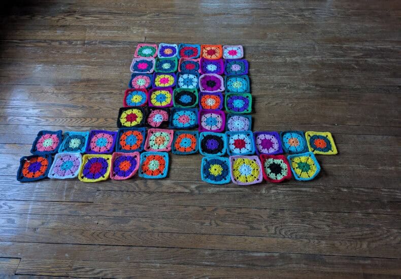 I have been working on a new cardigan. I adopted one of my granny squares from making dishcloths and I have about 20+ left to create to complete my project. I am hoping to be wearing this creation by Autumn. I decided to be random in my design; however, you can create one that has