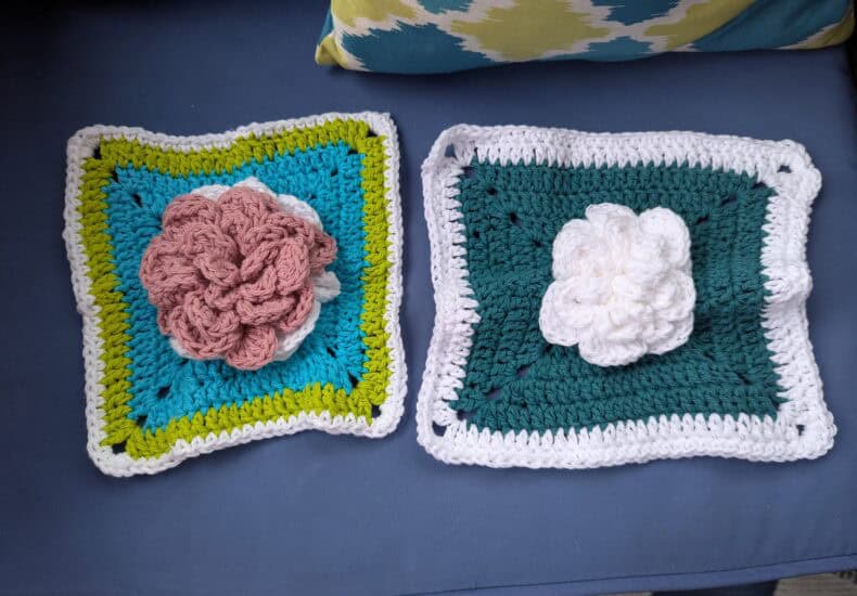 These dishcloths will work well as scrubbies. Making the flowers was challenging, but I love a challenge. I can normally whip up my 2 weekly dishcloths in a couple of days – these two took me all week. Lots of stitches….lots of yarn, but a beautiful outcome. It is a lesson, everything should not be