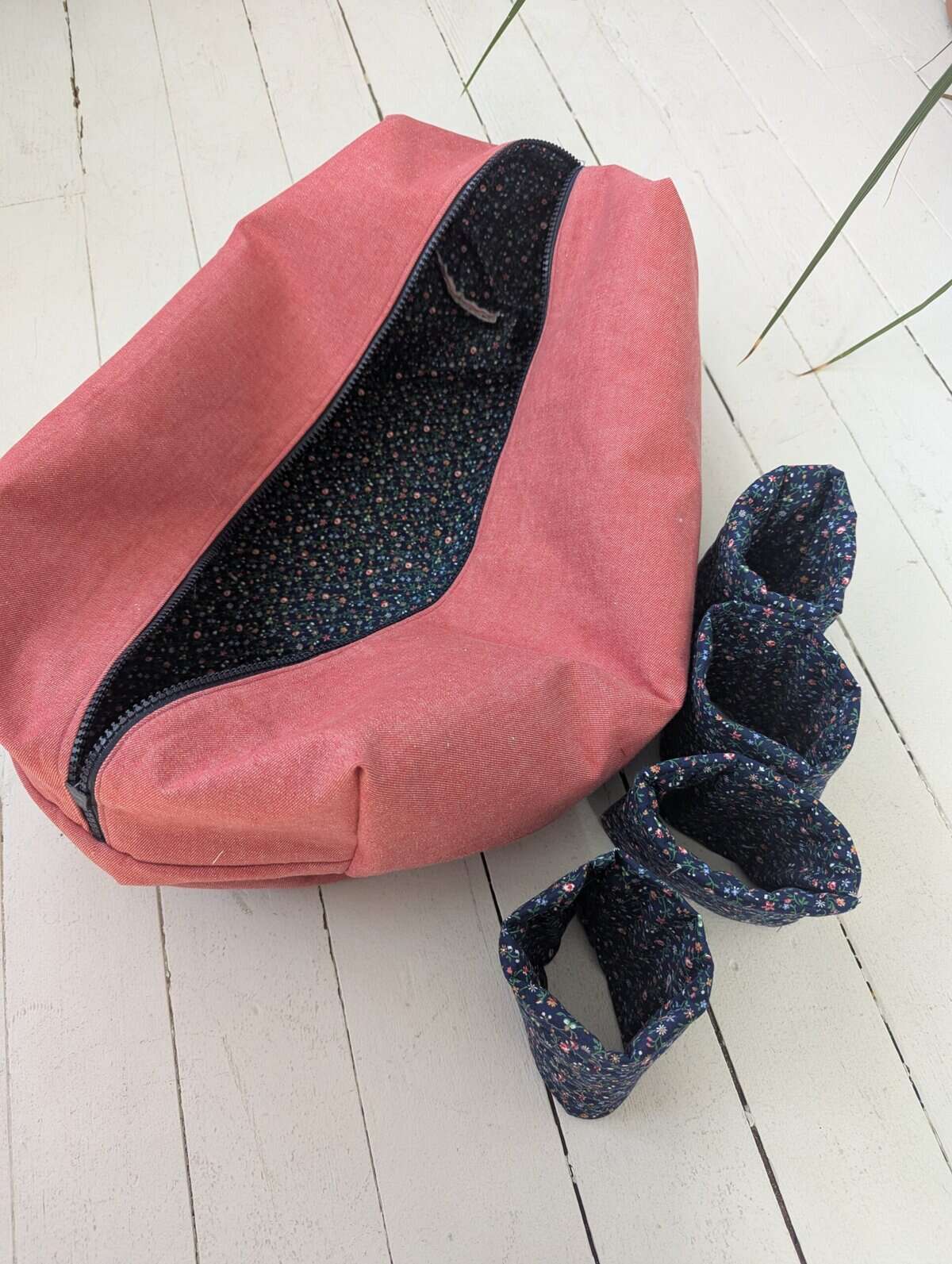 When it comes to sewing projects, making something three-dimensional is a fun challenge. Our future daughter-in-law, Angel, has a Dyson Airwrap hair curling tool. It comes in a rigid container, but for travel, she wanted a soft case for it and asked if we could make one. She picked a lovely pink denim for the inside and a floral print for the outside of the case.
